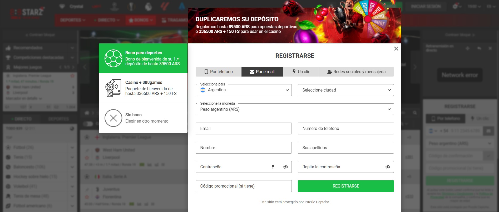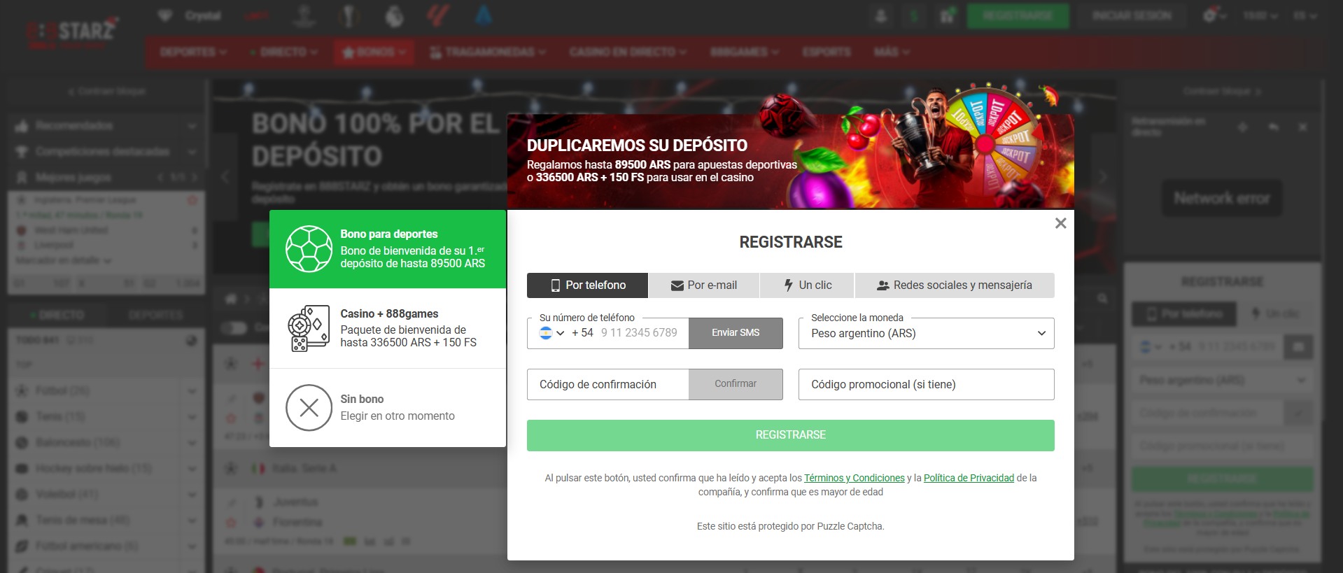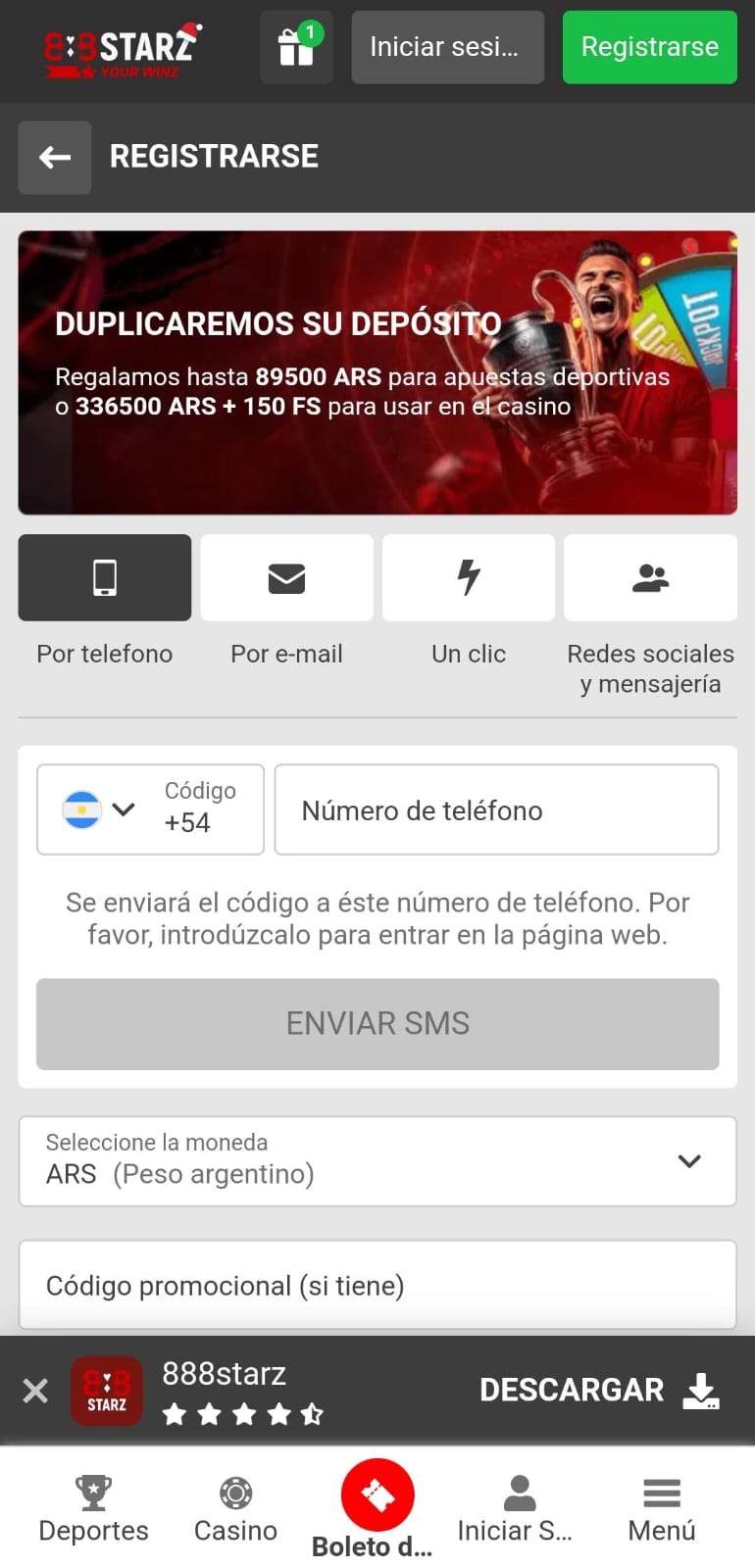 ¿Quieres ganar desde el primer momento? Suponemos que sí y con 888starz podés ganar mucho con el simple hecho de crear una cuenta porque es el requisito principal para acceder al bono de bienvenida del 100% hasta 89,500 ARS. Vos podés elegir qué tan alto será el importe de tu bono ya que se basa en la cantidad de dinero que ingreses en tu primer depósito pero sin duda lo verás duplicado.