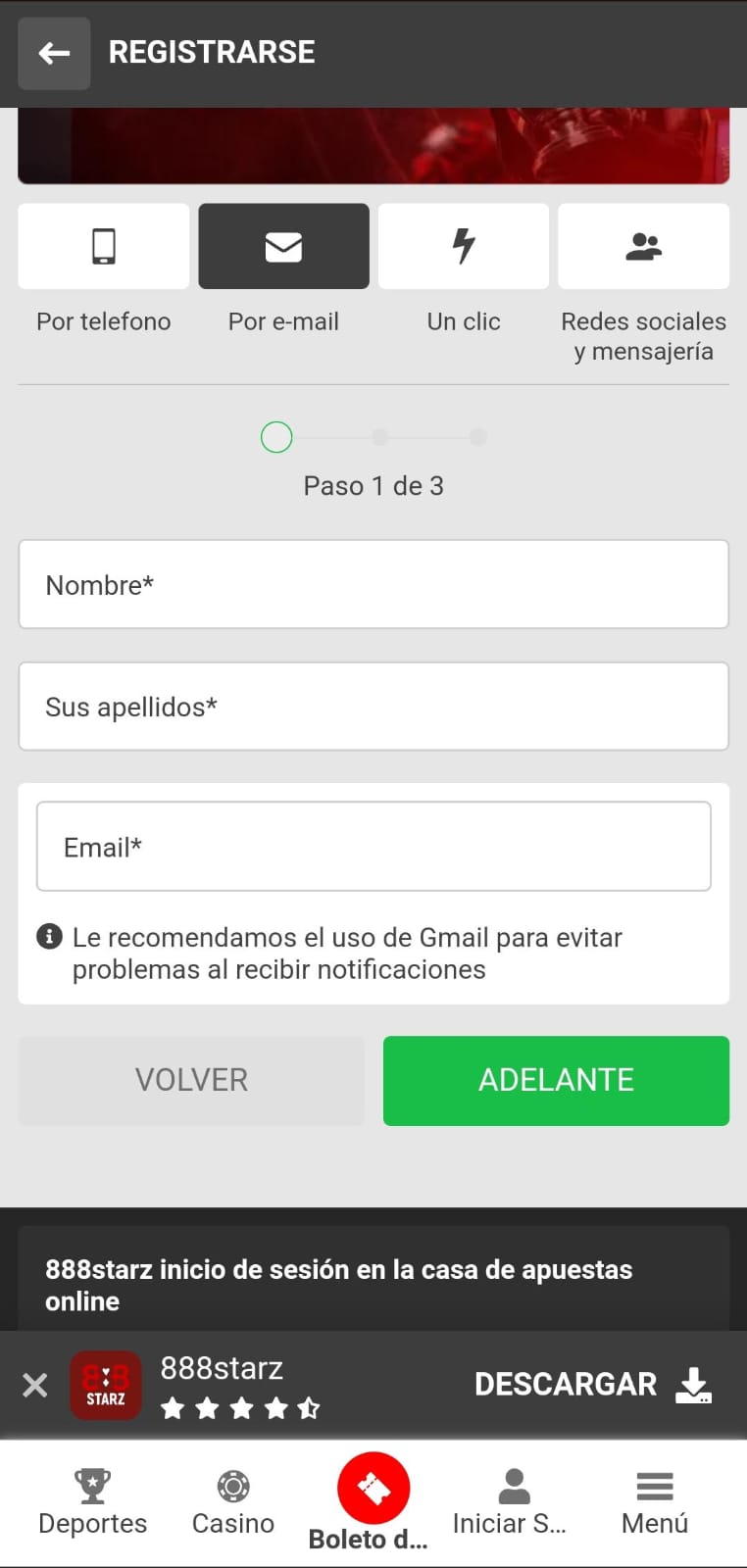 Tanto si ya quieres empezar a apostar en 888starz como si buscas reclamar tu bono de bienvenida o quieres explorar el sitio como usuario, la forma de registrarte es muy sencilla siguiente estos pasos: