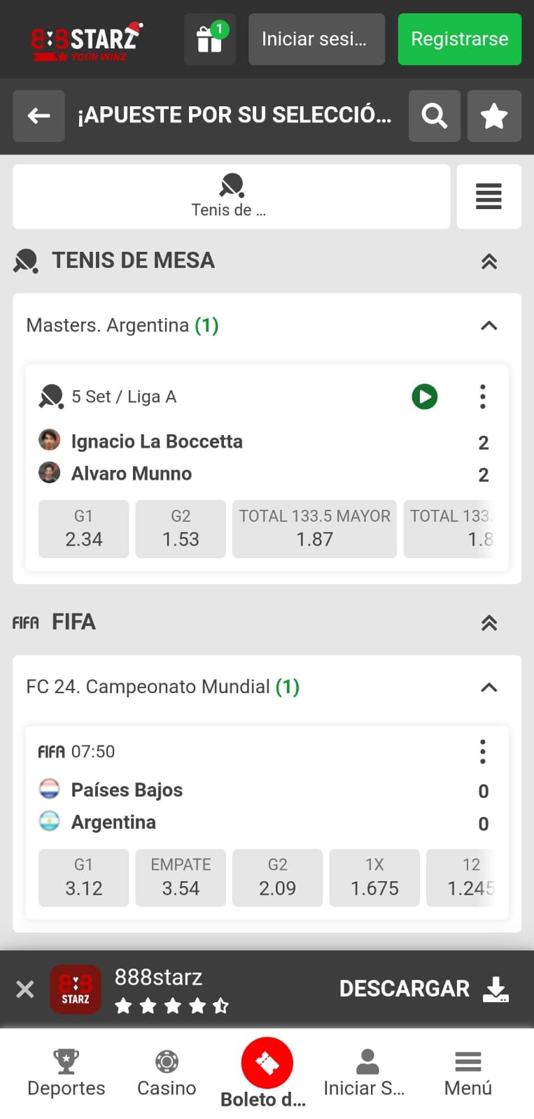 Las casas de apuestas de calidad como 888starz se actualizan constantemente para ofrecer una amplia gama de deportes para todos los gustos. En 888starz encontrás una lista muy completa de categorías con más de 40 opciones. Por supuesto, cada uno de estos deportes tiene una variedad de eventos y mercados que se ajustan a la demanda.