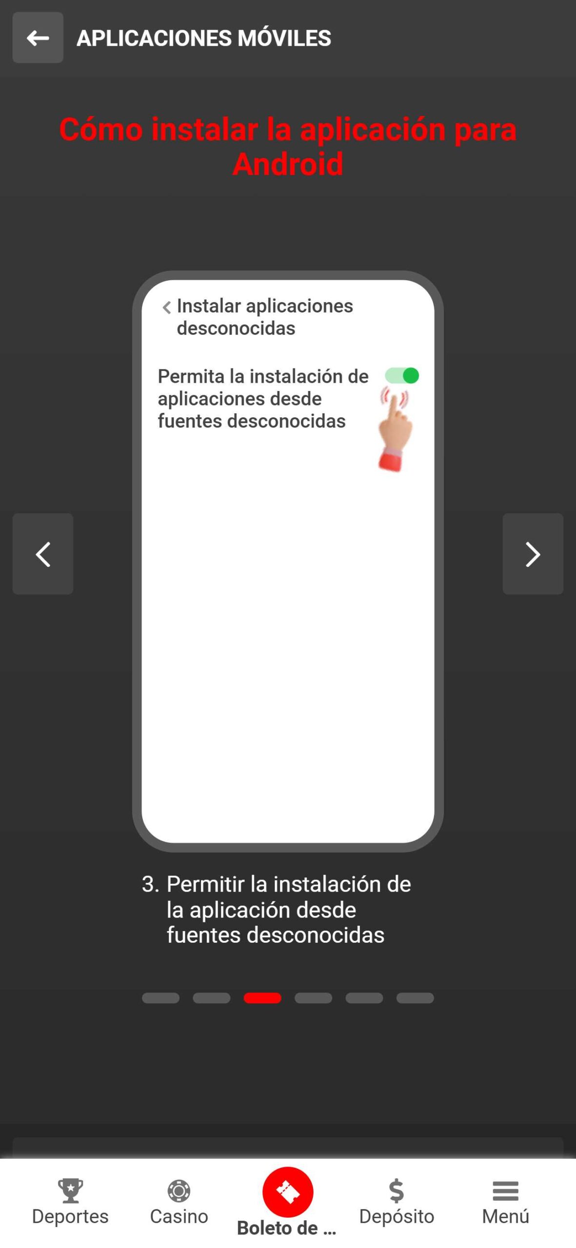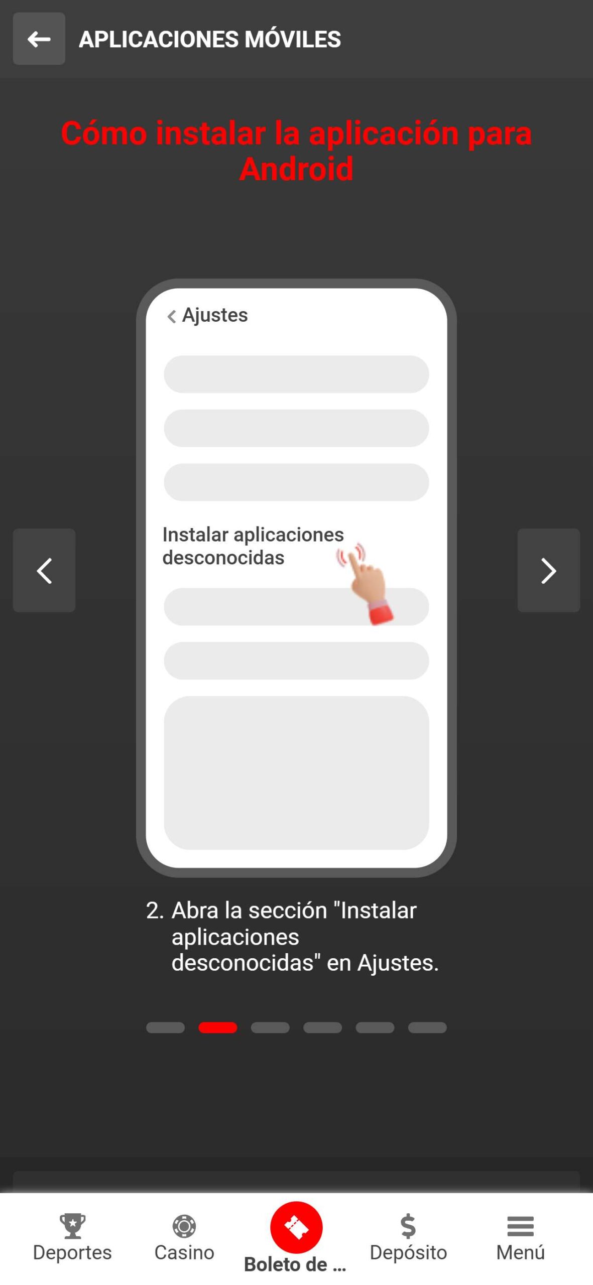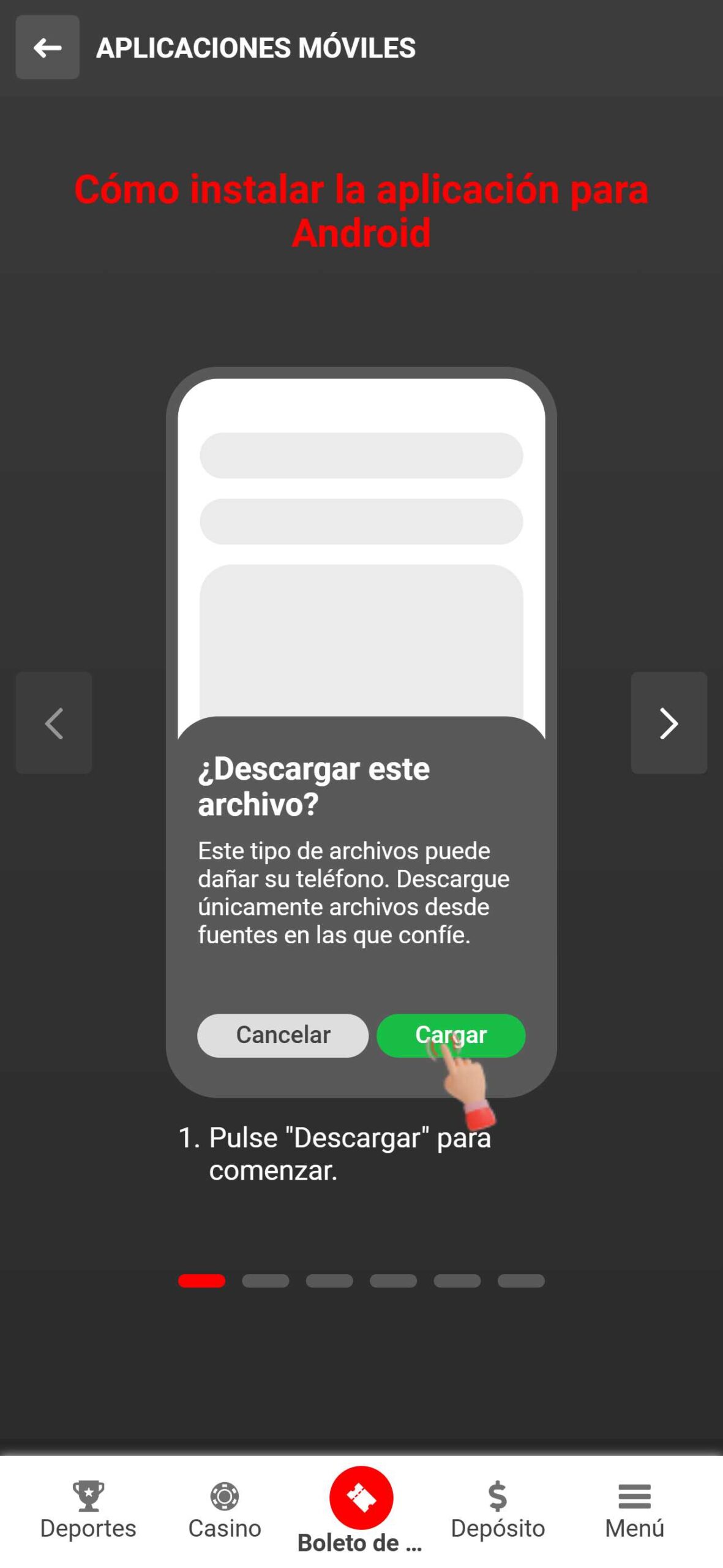 Para descargarla, solo hacé clic en el botón “Aplicación móvil” en la parte superior del sitio web del operador.