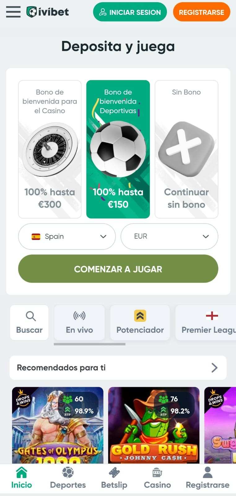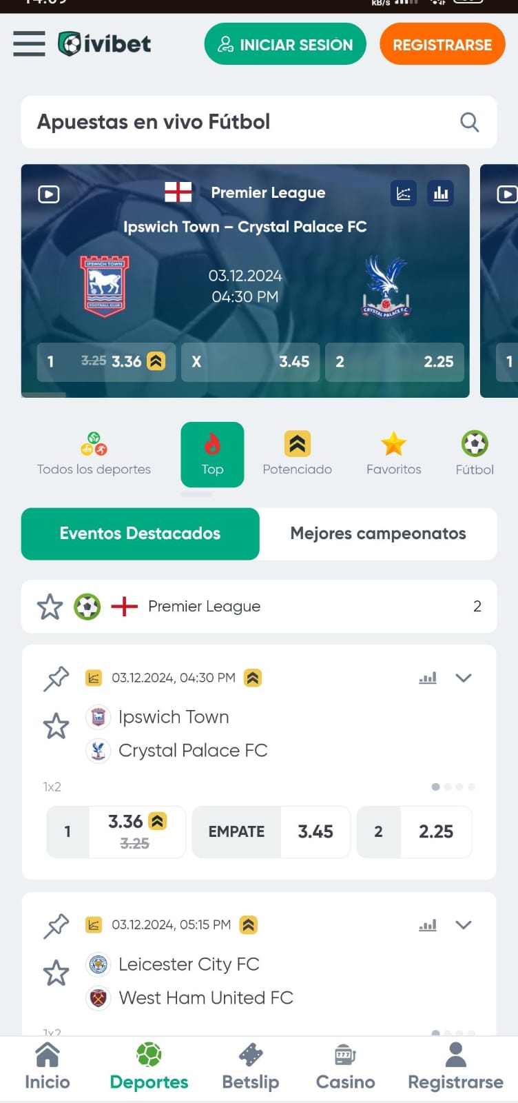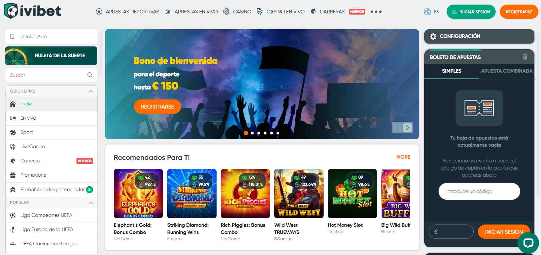 Ivibet que es principalmente una casa de apuestas por lo que indica su logo, pantalla de inicio y accesos directos, desde la página inicial ofrece un menú lateral con las ligas principales de fútbol, logrando restarle pasos al proceso de encontrar el evento de tu interés.