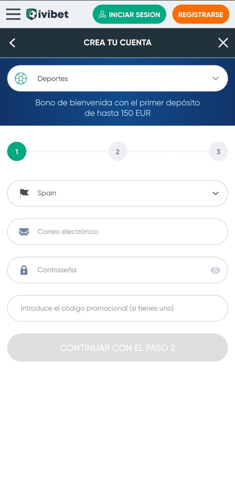 Sigue los siguientes pasos para crear tu cuenta en Ivibet: