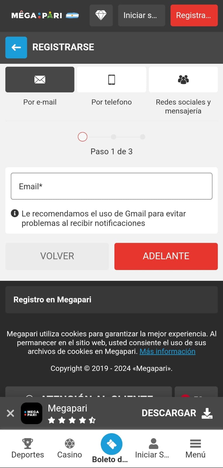 Es fácil sentirse atraído por Megapari y si es el caso y ya quieres ver cómo es la plataforma desde adentro como usuario, solo tendrás que hacer lo siguiente: